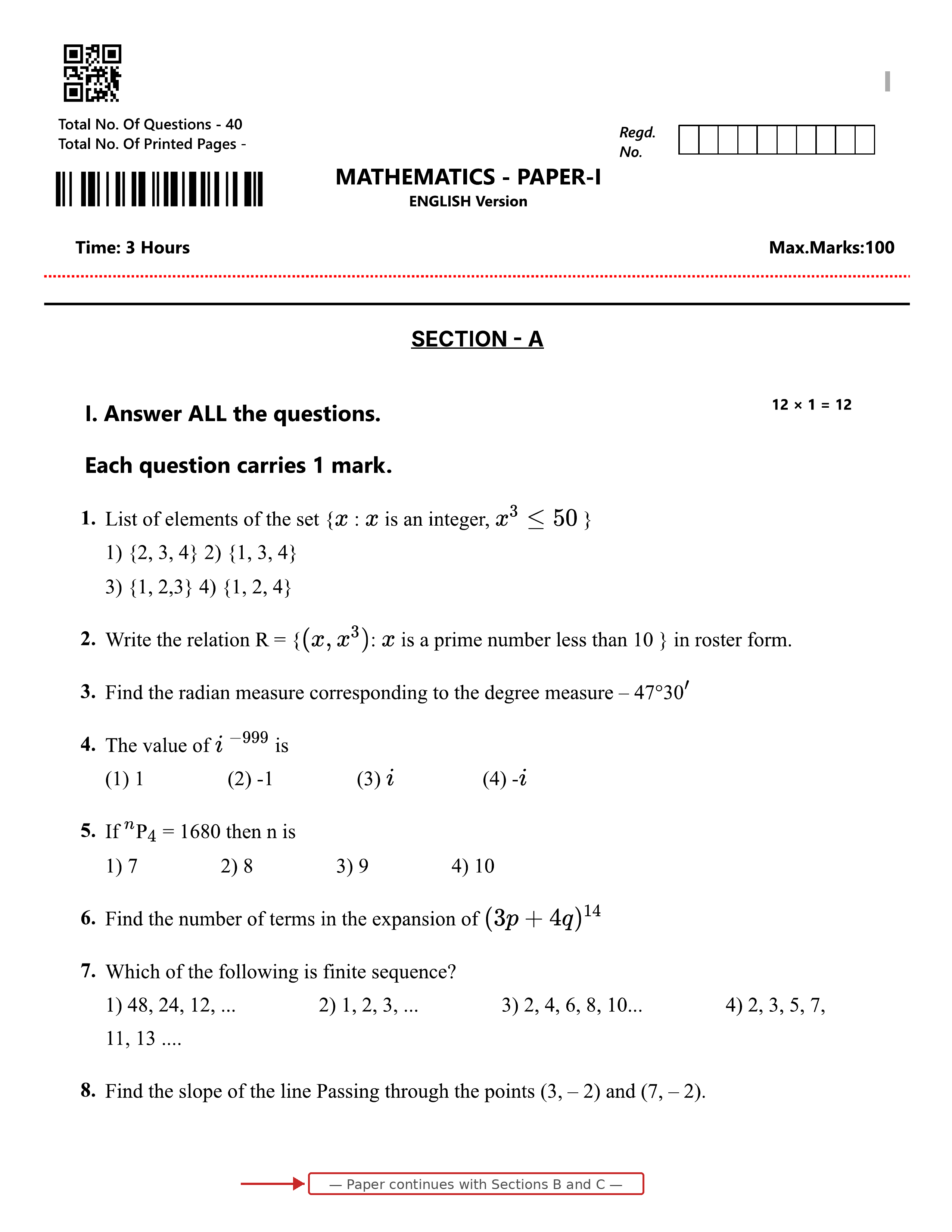 Every generated paper follows a standardized format with QR code, registration fields, section-wise instructions, and proper question numbering โ ready for secure printing.